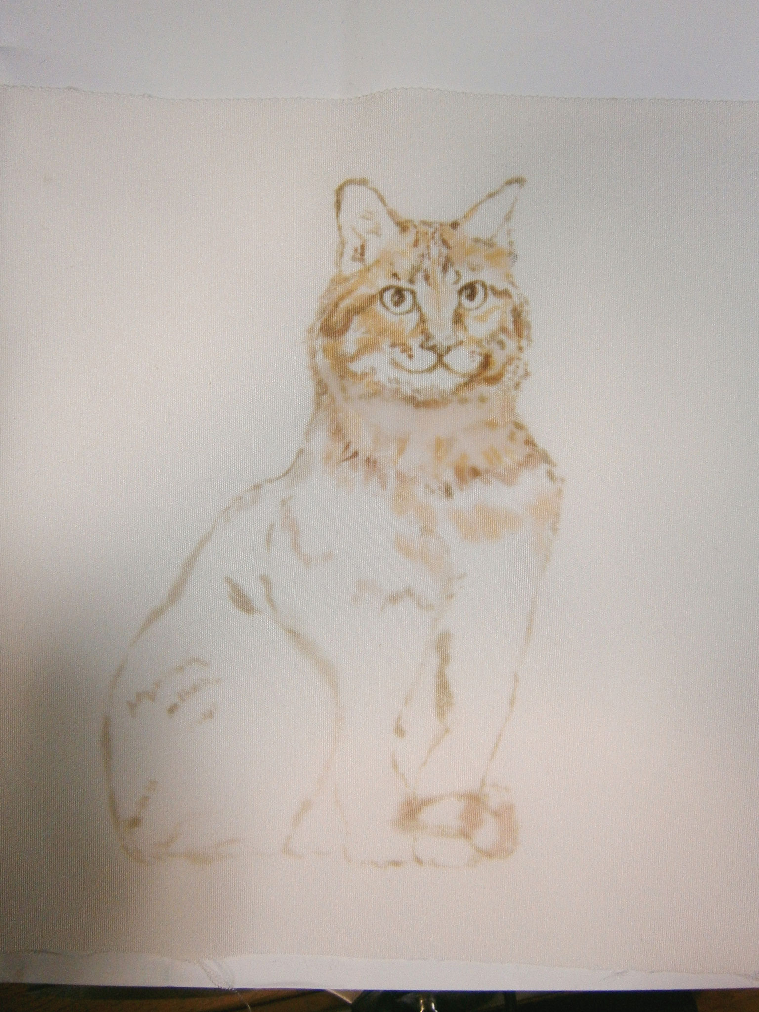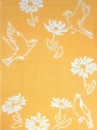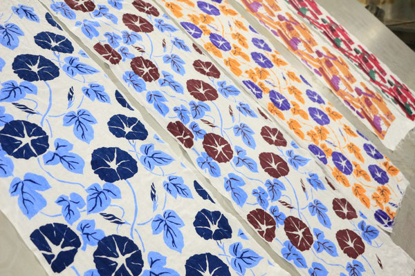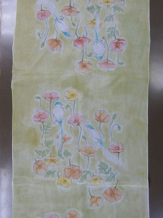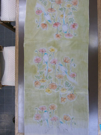 図柄から描き起こして、水彩画のような透明感のある表現を意識して、素描友禅で染めたストールです。