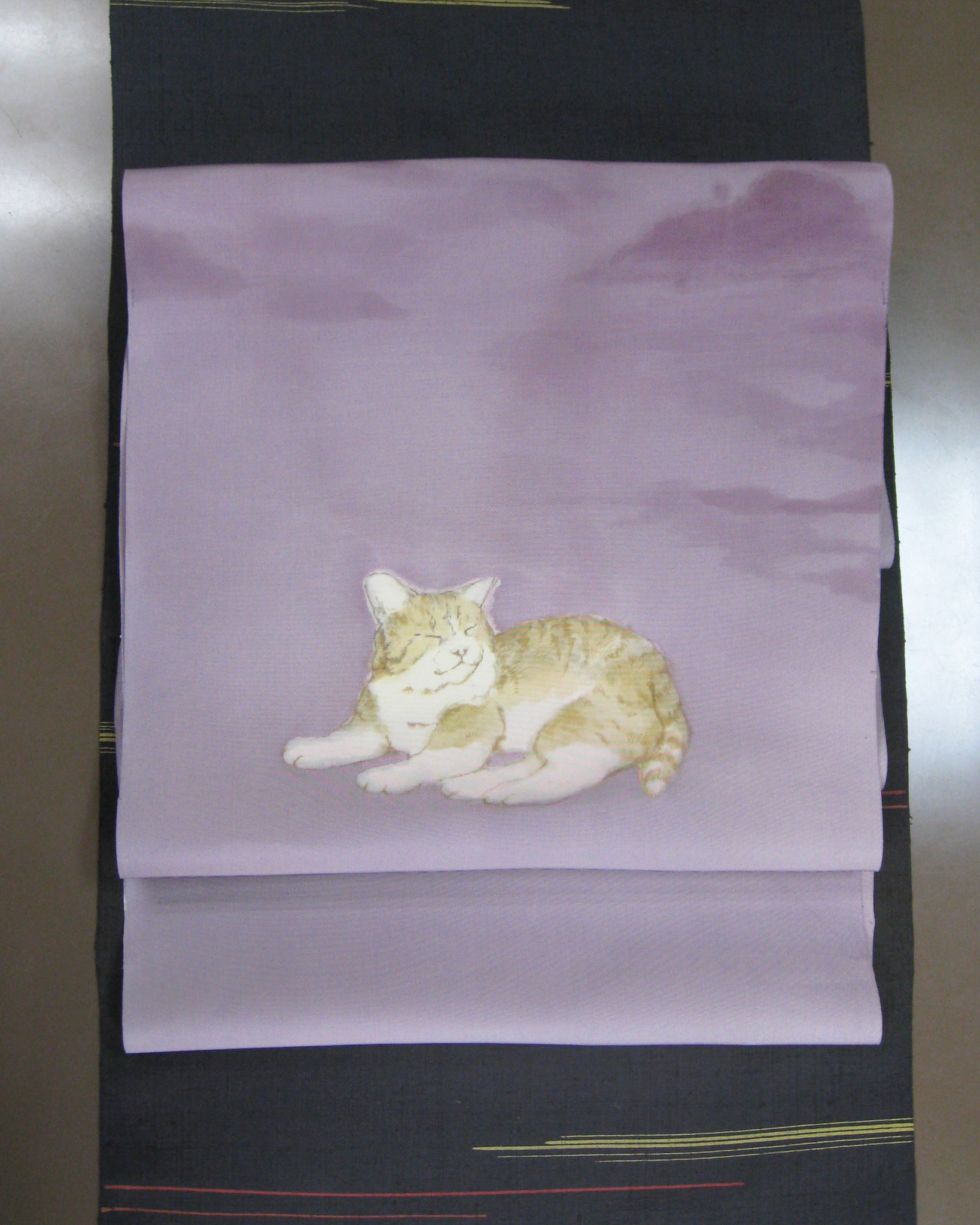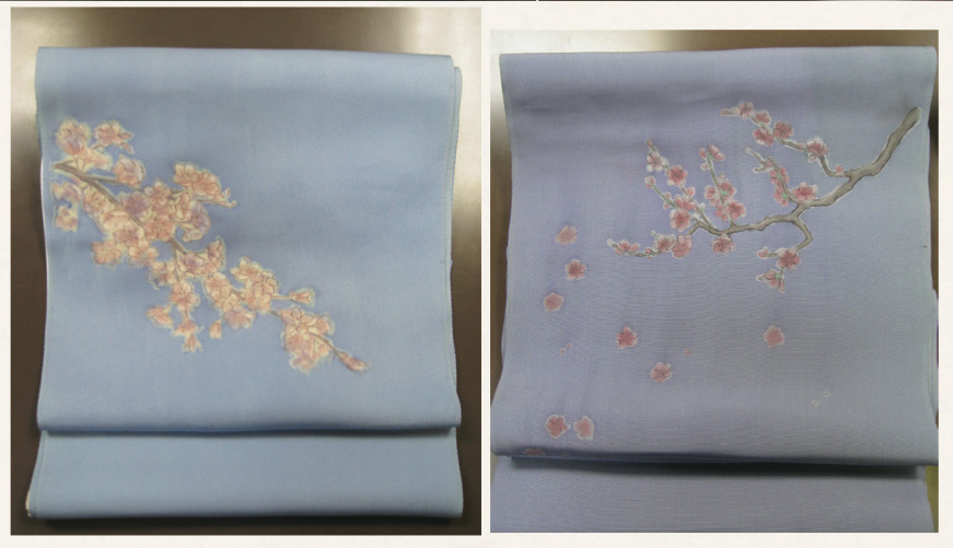 地色はひわ色に染め、あえて引き染めせずに手描きのタッチを残すように染めています。