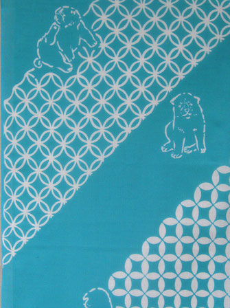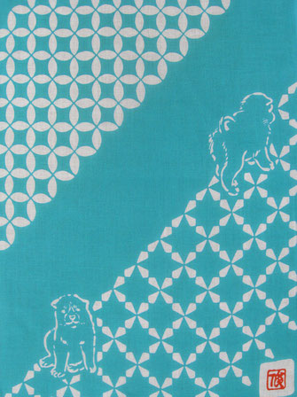 毎年色にこだわっています。戌年手ぬぐいではエメラルドグリーンとターコイズの中間のような色になりました。